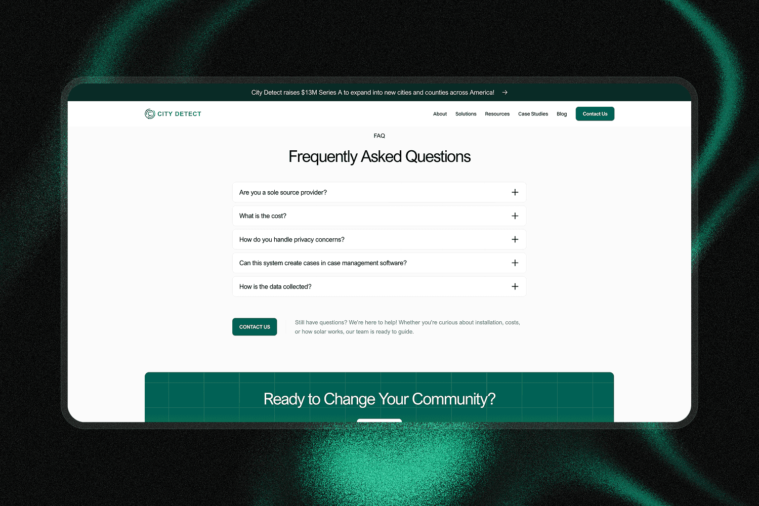 City Detect needed a marketing site that clearly explained the value of their camera and software ecosystem. The previous site lacked structure and didn’t fully communicate what made the product different from typical code enforcement strategies.