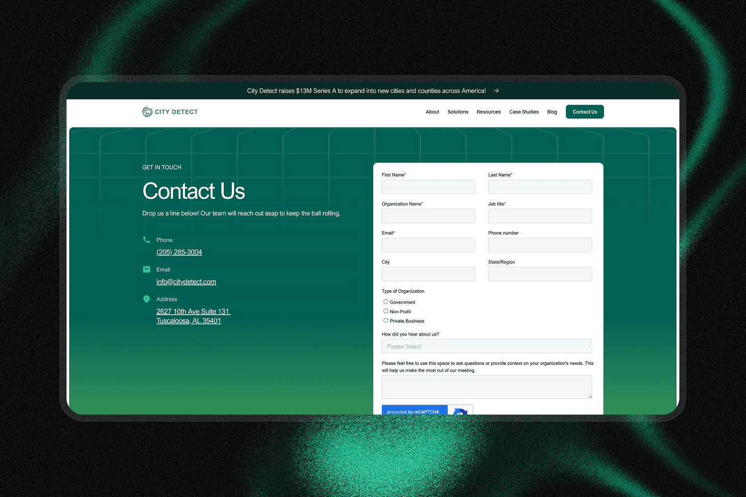 The site was built in Framer, allowing the City Detect team to easily update content and manage pages through CMS collections.